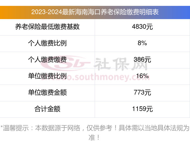 海南海口养老保险缴费比例及基数标准2023-2024最新消息