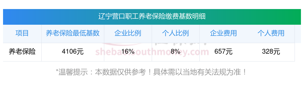 根据有关法规,辽宁营口企业职工基本养老保险缴费基数暂按不低于4106元;