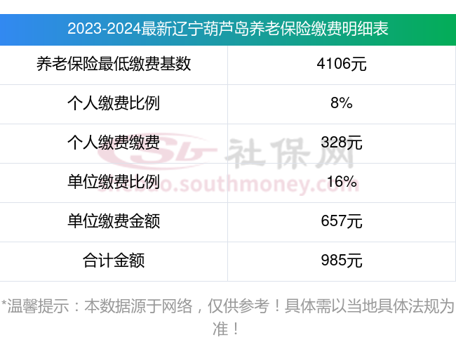 辽宁葫芦岛养老保险缴费基数2023-2024年最新标准(最低)