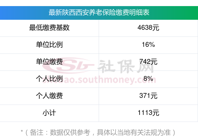 陕西西安养老保险缴费基数2023年最新标准(最低)