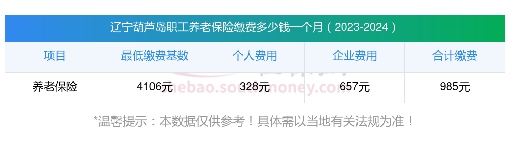 辽宁葫芦岛养老保险缴费基数2023-2024最新标准