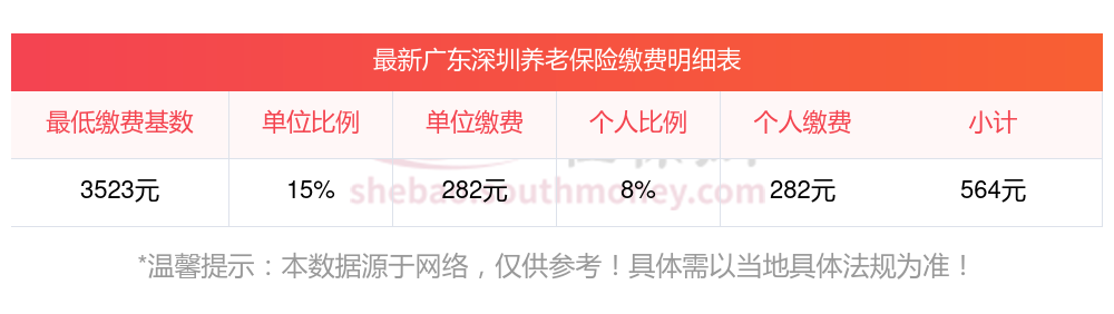 2023-2024年广东深圳养老保险缴费比例及基数标准(最新)