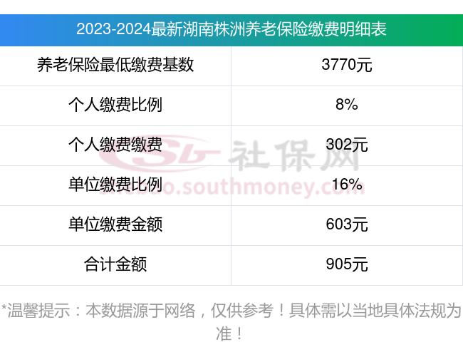湖南株洲养老保险缴费基数2023-2024最新标准,一个月要交多少钱?