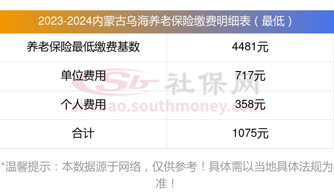 内蒙古乌海养老保险缴费基数2023-2024最新标准如下