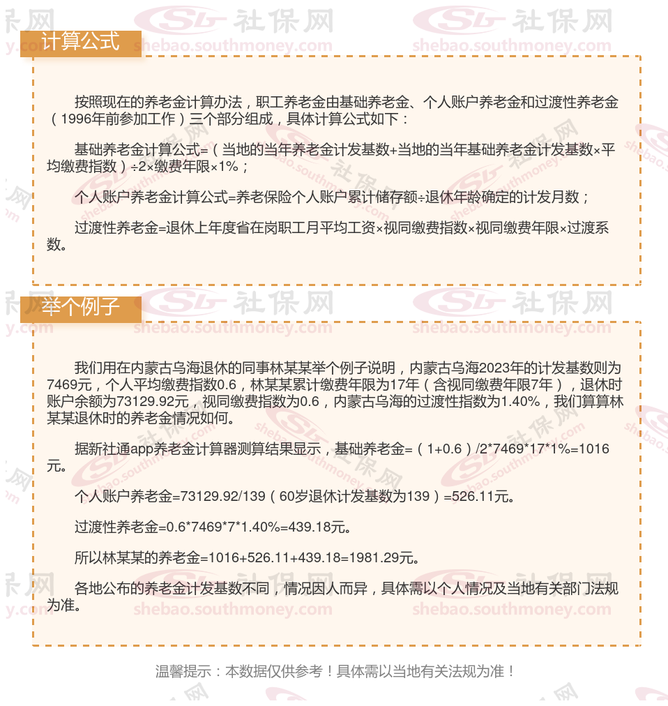 内蒙古乌海社保交满15年能领多少钱?(在线计算举例说明)