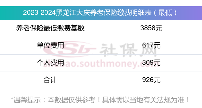 黑龙江大庆养老保险缴费标准2023-2024最新消息