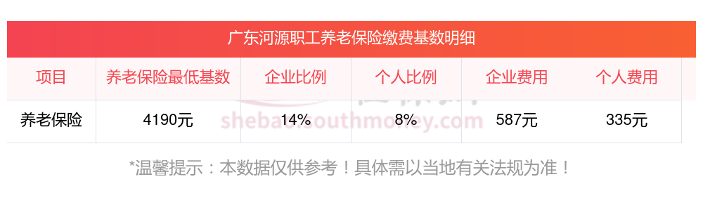 广东河源养老保险缴费基数2023-2024最新标准如下