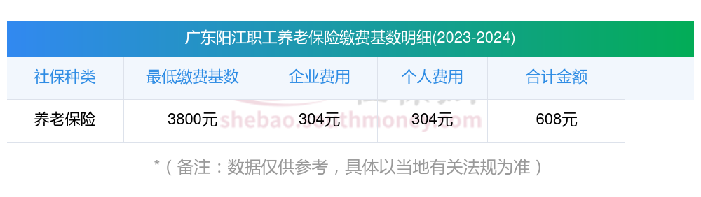 广东阳江养老保险缴费基数2023-2024年最新标准(最低)