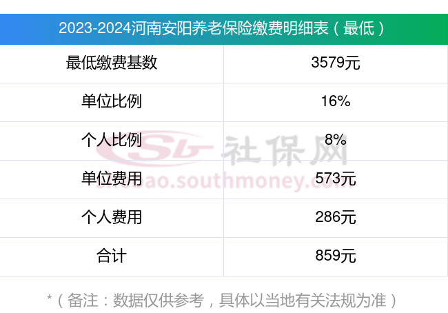河南安阳养老保险缴费基数2023-2024年最新标准(最低)