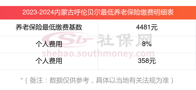 内蒙古呼伦贝尔养老保险缴费标准2023-2024最新消息