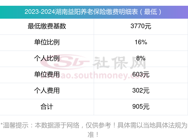 据新社通app显示,湖南益阳养老保险缴费基数2023-2024年最新标准如下:
