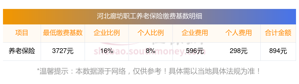 河北廊坊养老保险缴费基数2023-2024年最新标准(最低)一个月要交多少钱?举例说明