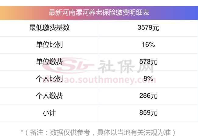 据新社通app获悉,河南漯河的养老保险缴费金额因个人情况而异,包括个人缴费基数、缴费比例等因素。以下是一些参考信息: