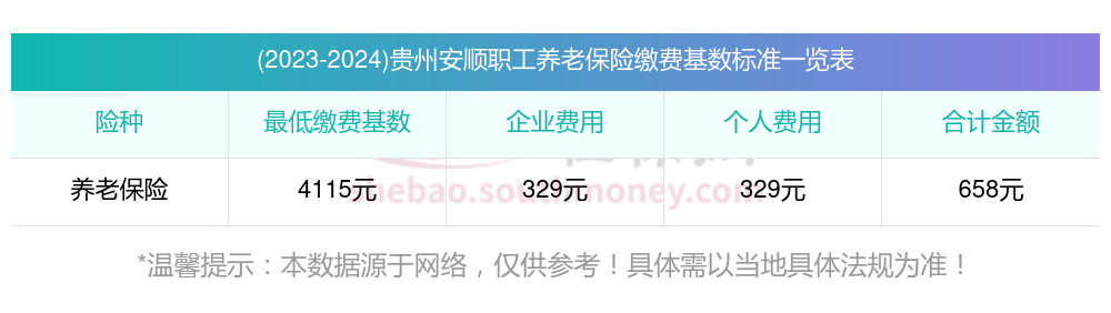贵州安顺养老保险缴费基数2023-2024最新标准
