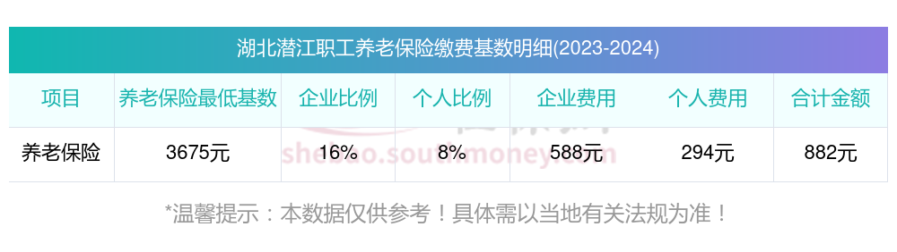 据新社通app显示,湖北潜江养老保险缴费基数2023-2024年最新标准如下: