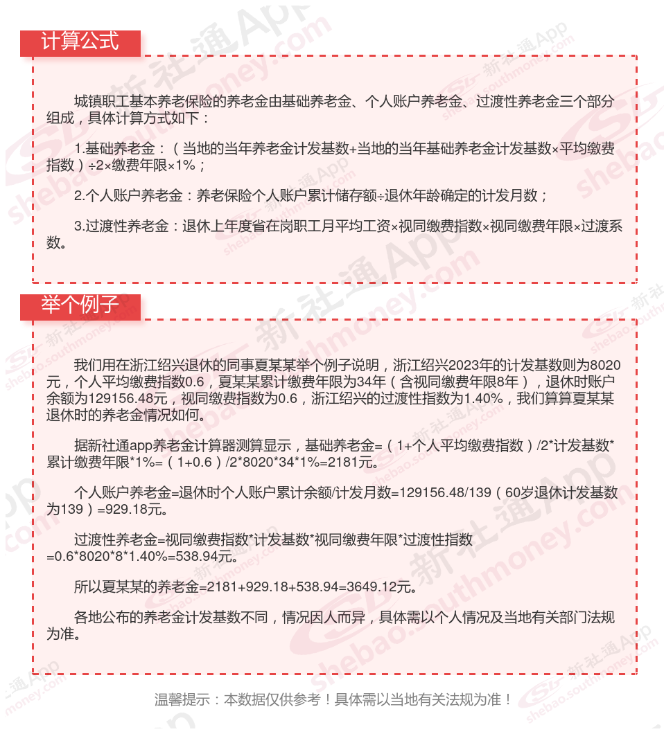 浙江绍兴养老金计算公式2024年计算方法(在线计算器)