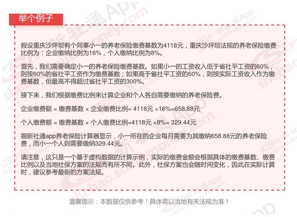 重庆沙坪坝养老保险缴费基数2023-2024年最新标准(最低)要交多少钱一个月?