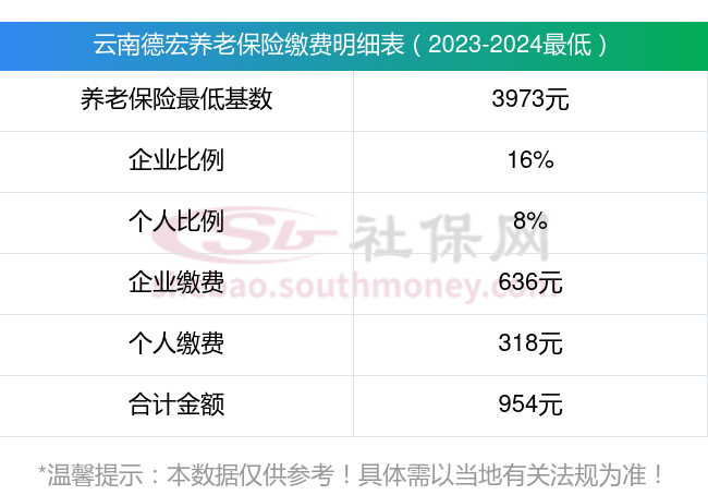 云南德宏养老保险缴费基数2023-2024最新标准,一个月要交多少钱?