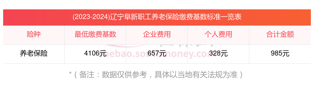 辽宁阜新养老保险缴费基数2023年最新标准(最低)