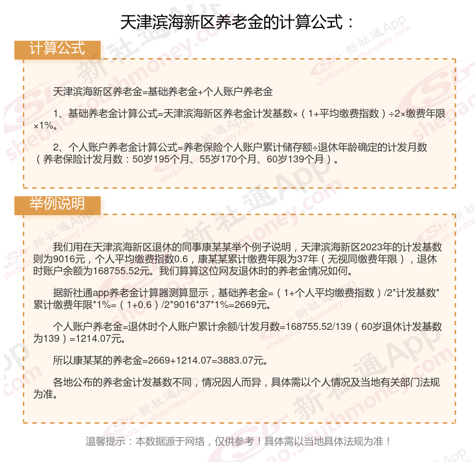 天津滨海新区养老金计算公式2024年计算方法(在线计算器)