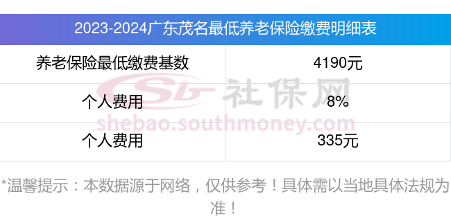 据新社通app获悉,养老保险是为居民退休后的经济来源提供保证的保险,对于单位职工而言,由用人单位和职工本人共同缴纳养老保险,保费较高;而居民的养老保险保费是由居民个人承担。不管是职工养老保险还是居民养老保险,保费都需要通过养老保险缴费基数计算得出。下面随新社通app小编一起来看看广东茂名养老金缴费标准2023-2024最新基数比例是多少!