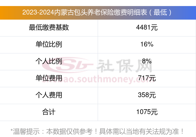 内蒙古包头养老保险缴费基数2023-2024年最新标准(最低)一个月要交多少钱?举例说明