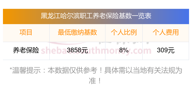 养老保险一个月要交多少钱?黑龙江哈尔滨缴费基数2023-2024年最新标准(最低)