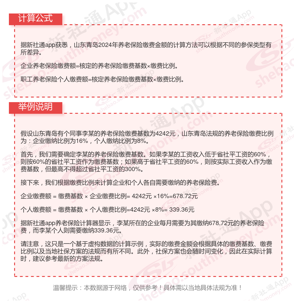 据新社通app显示,山东青岛职工养老保险缴费基数2023-2024年最新标准如下: