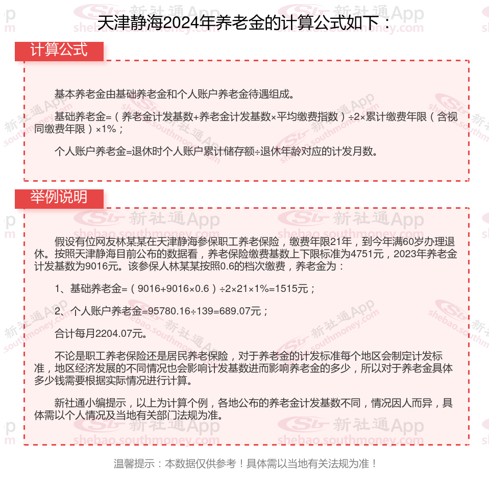 天津静海养老金计算公式2024年计算方法(在线计算器)