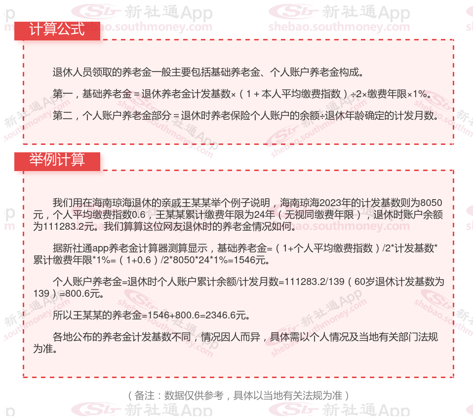 海南琼海养老金计算公式2024年计算方法(在线计算器)