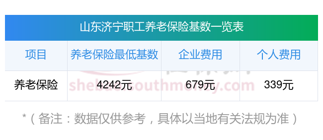 据新社通app显示,山东济宁企业职工养老保险的缴费基数为:4242元。