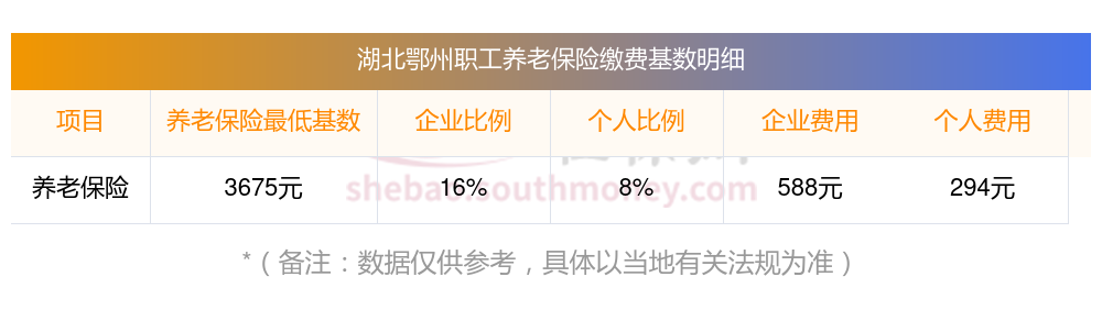 湖北鄂州养老保险缴费基数2023-2024年最新标准(最低)