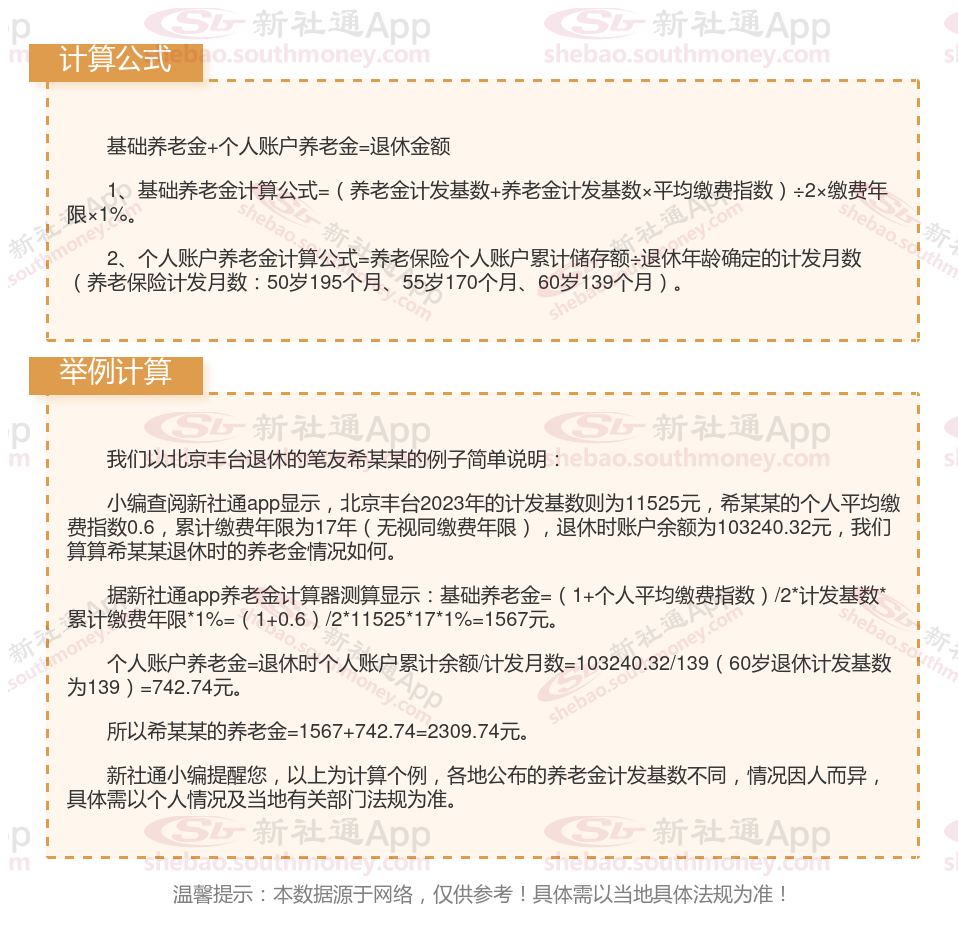 北京丰台养老金计算公式2024年计算方法(在线计算器)