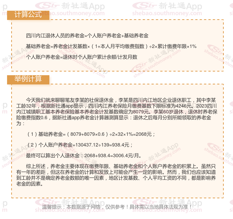 四川内江养老金计算公式2024年计算方法(在线计算器)