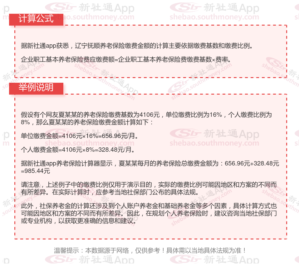 辽宁抚顺养老金计算公式2024年计算方法(在线计算器)