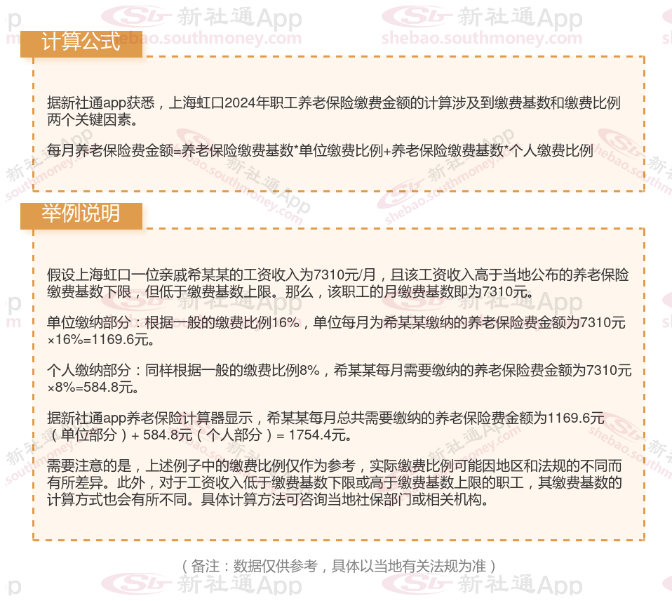 上海虹口养老保险缴费基数2023-2024年最新标准(最低)要交多少钱一个月?