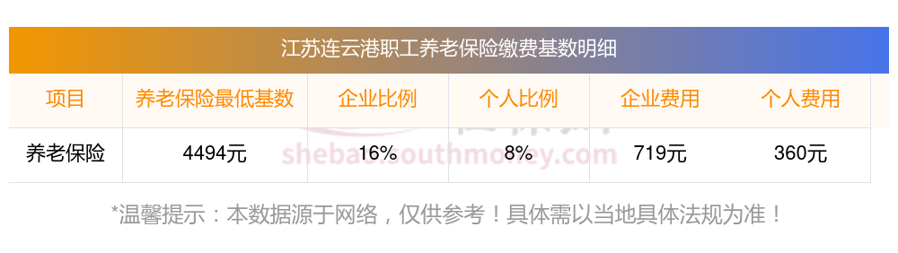 江苏连云港养老保险缴费基数2023年最新标准(最低)