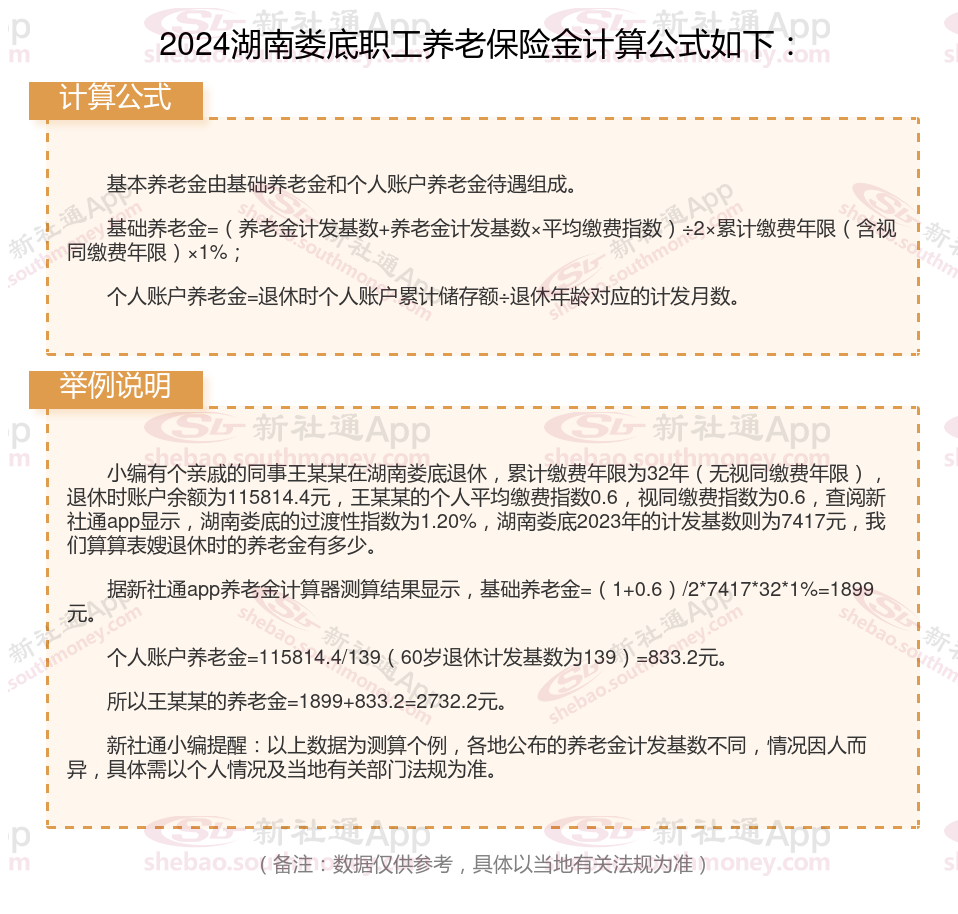 湖南娄底养老金计算公式2024年计算方法(在线计算器)