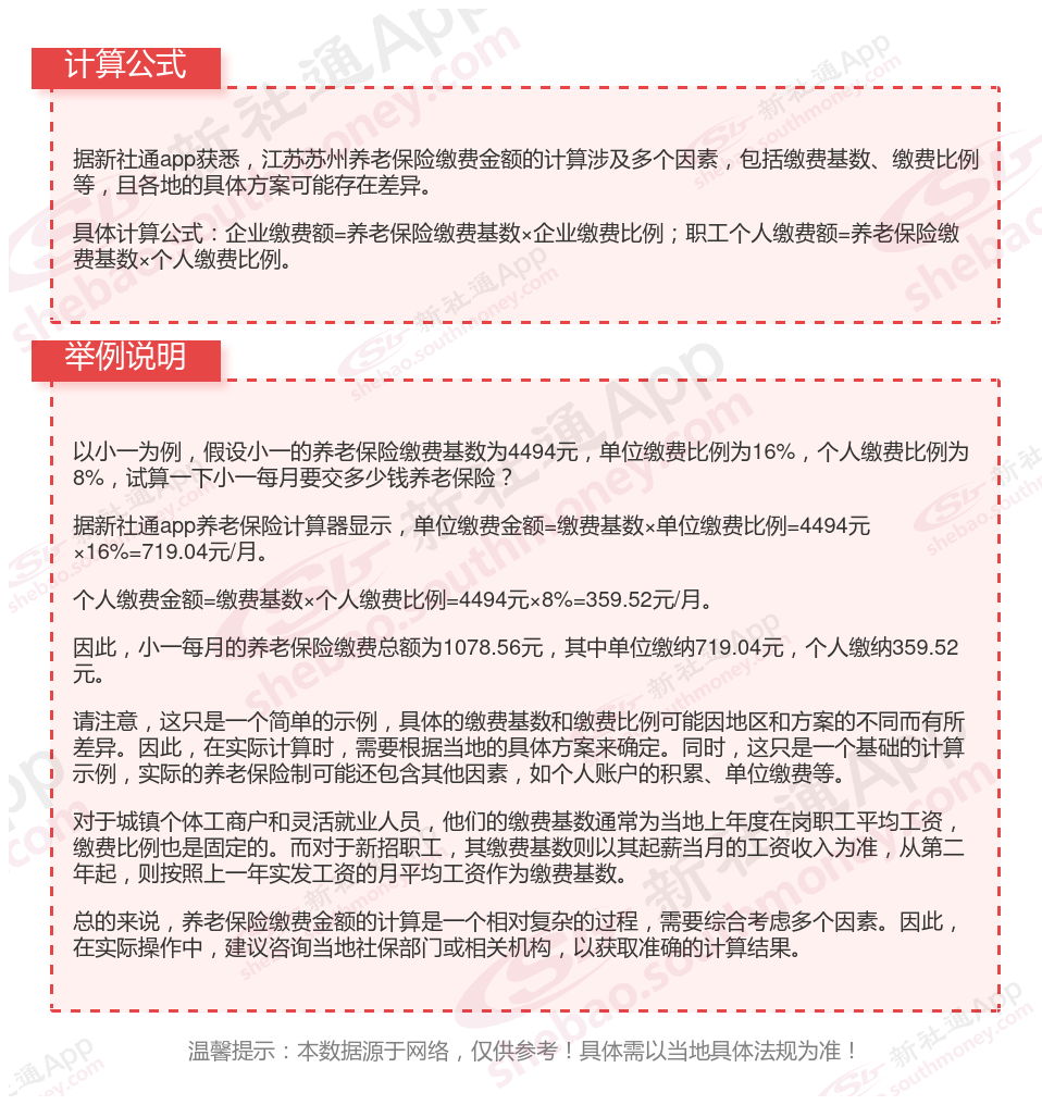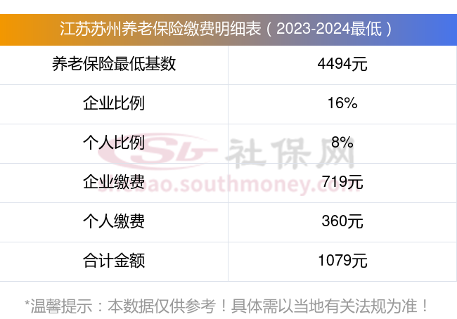 江苏苏州养老保险缴费基数2023-2024年最新标准(最低)要交多少钱一个月?