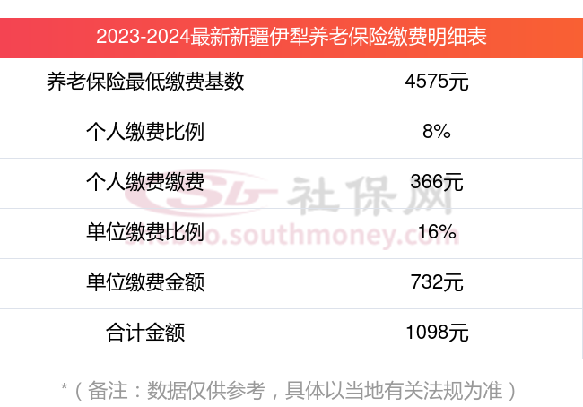 新疆伊犁养老保险缴费标准2023-2024最新消息