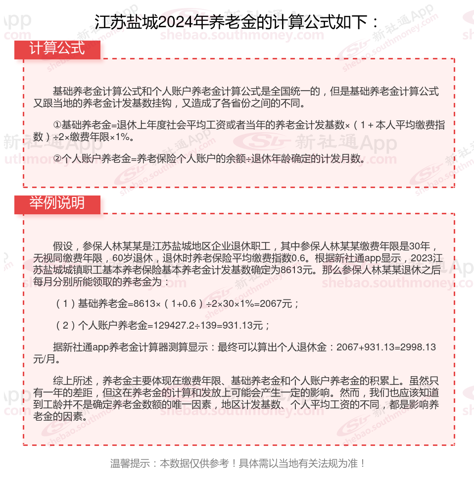 江苏盐城养老金计算公式2024年最新计算器 社保交满15年能领多少钱?