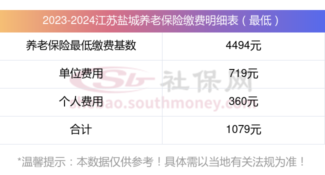 江苏盐城养老保险缴费基数2023-2024年最新标准(最低)要交多少钱一个月?