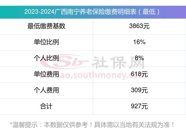 广西南宁养老保险缴费基数2023-2024年最新标准(最低)一个月要交多少钱?举例说明