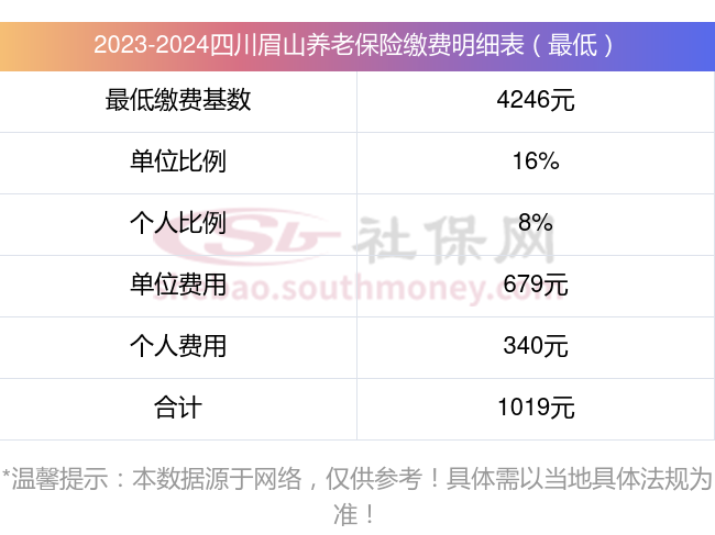 据新社通app获悉,养老保险是与参保人退休后的待遇相关的,只有达到了一定的缴费水平,退休后才能享受较好的待遇水平,也就是说缴费水平过低的话,那么未来能够享受的养老金水平也会比较低。而养老保险保费需要根据缴费基数确定。下面随新社通app小编一起来看看,四川眉山养老保险缴费标准2024年是多少?附养老金计算公式(在线计算器)。