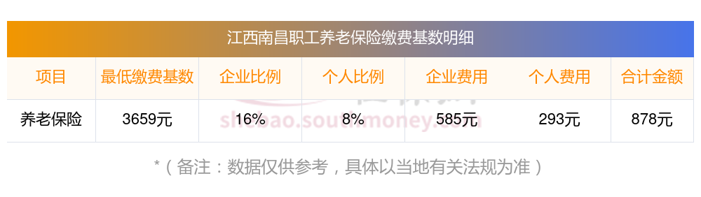 据新社通app获悉,江西南昌养老保险缴费金额的计算通常基于缴费基数和缴费比例。以下是一个具体的计算举例:
