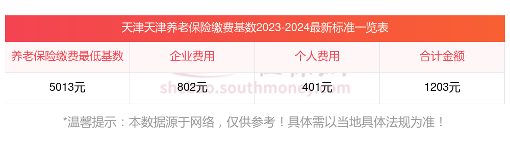 2023-2024年天津天津养老保险缴费比例及基数标准(最新)