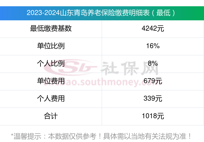 假设山东青岛某职工的工资总额为4242元,那么他的缴费基数就是4242元的60%到300%之间。如果他选择按照缴费基数为4242,据新社通app养老保险计算器测算显示,他的个人缴费额就是4242元*8%,等于339.36元。