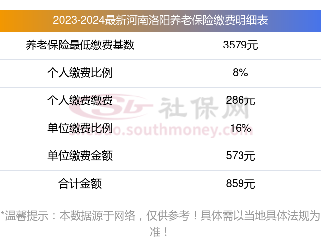 河南洛阳养老保险缴费标准2023-2024最新消息