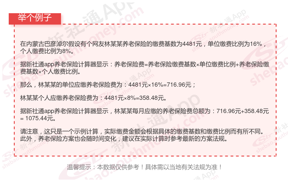 养老保险一个月要交多少钱?内蒙古巴彦淖尔缴费基数2023-2024年最新标准(最低)
