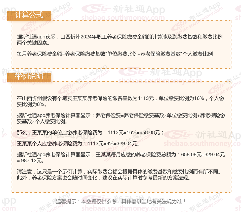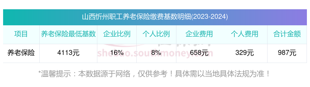 山西忻州养老保险缴费基数2023-2024年最新标准(最低)要交多少钱一个月?